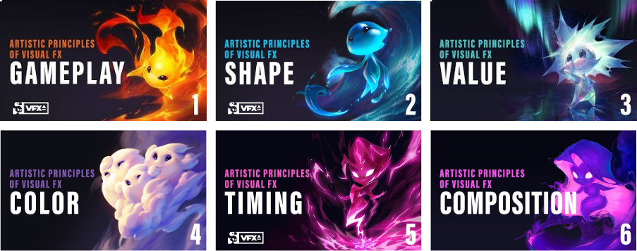 - Riot Games çalışanlarının oluşturduğu VFX Apprentice oluşumunda belirtildiği; Gameplay - Shape - Value - Colors - Timing- Composition konularını bilinmesi temel olarak önemli Youtube - VFX Apprentice