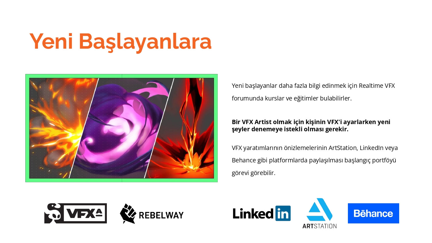 VFX yaratımlarının önizlemelerinin ArtStation, LinkedIn veya Behance gibi platformlarda paylaşılması başlangıç portföyü görevi görebilir.
